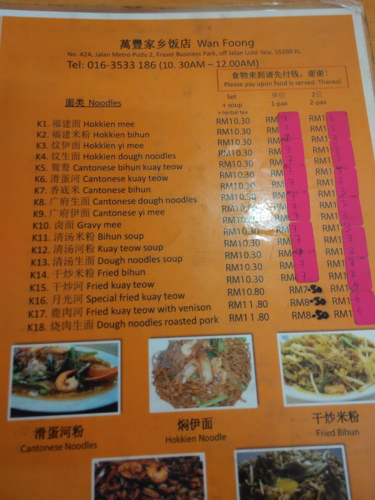 Introducing the menu of Restoran Wan Foong, a hidden gem in Kuala Lumpur’s Fraser Business Park, is a culinary adventure worth exploring. This charming Chinese restaurant strikes the perfect balance between a cozy atmosphere and elegant dining. The menu is impressively diverse, featuring tantalizing options like Char Kuey Teow and Curry Pork Rice, both served with generous portions that offer incredible value.